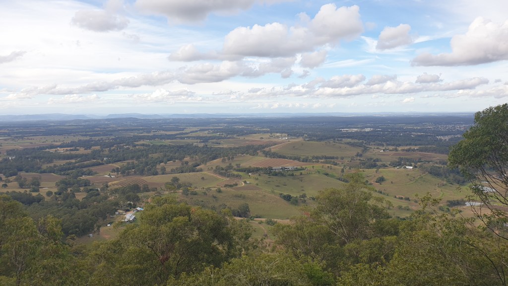 Sur le chemin du retour, nous admirons le soleil qui se couche sur les majestueuses Glass House Mountains, un groupe de monts volcaniques baptisé ainsi par James Cook lors de son voyage en Australie en 1770 car ils lui rappelaient les fours à verre du Yorkshire.