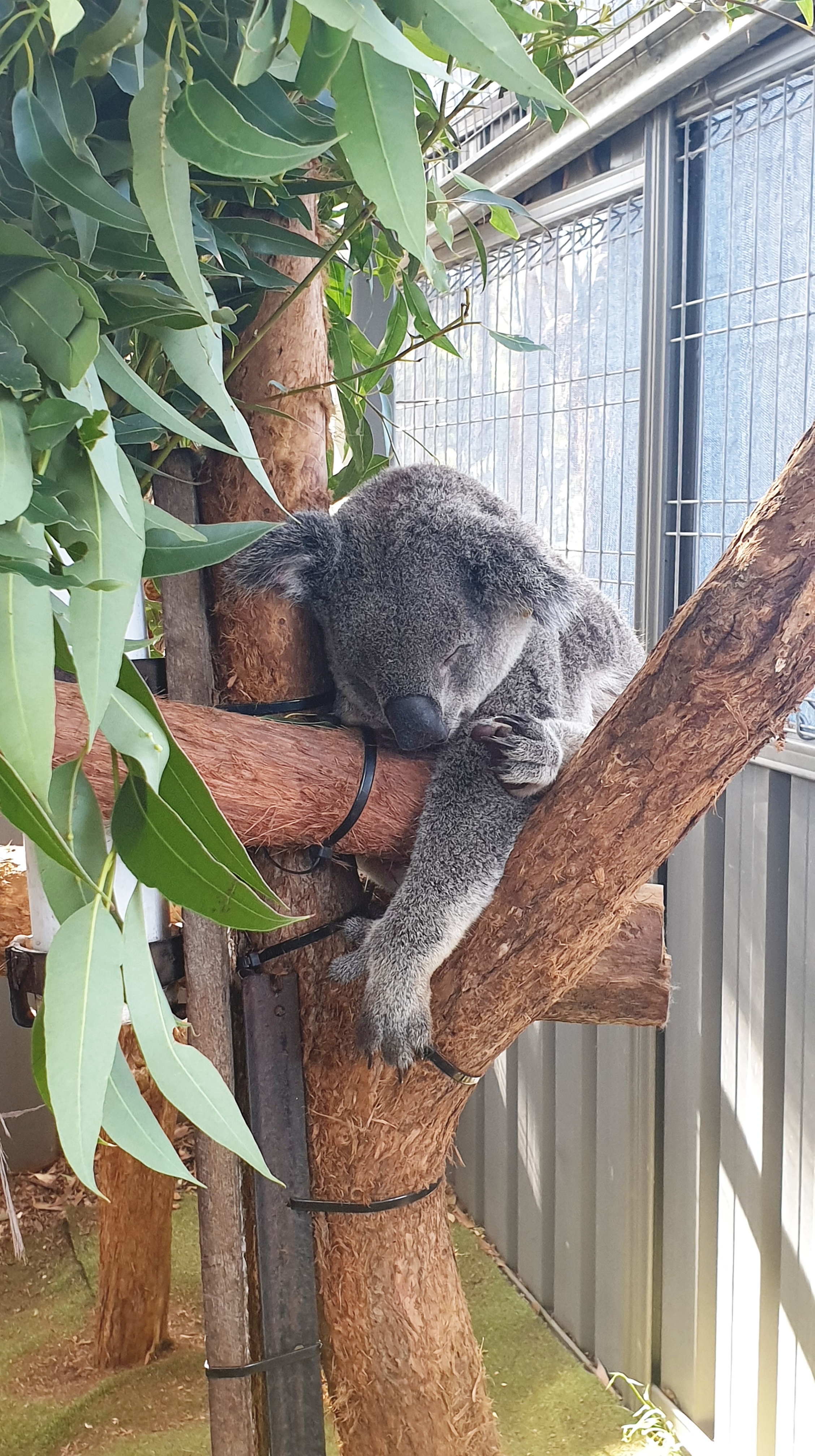 Nous voilà arrivés à Port Macquarie. Nous visitons une clinique pour koalas, où les animaux blessés/aveugles/ heurtés par un véhicule/brûlés dans un feu de forêt sont recueillis et soignés jusqu’à ce qu’ils soient complètement rétablis puis sont libérés dans la nature. C’est la première fois que j’en vois. Ils sont si adorables! Ils dorment tous pendant une grande partie de la journée, accrochés aux branches d’eucalyptus, parfois perchés si haut qu’on se demande comment il font pour ne pas tomber. Chacun a un nom et une histoire. Certains ne pourront jamais être relâchés du fait de leur état et resteront pensionnaires de la clinique à vie.