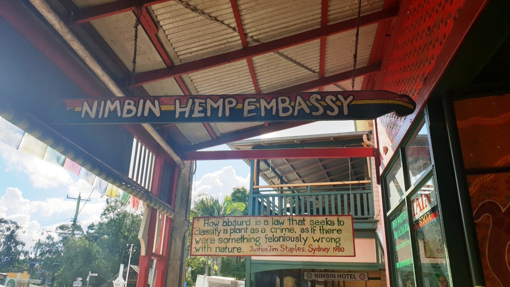 Hier soir était notre dernière nuit à Byron Bay. Aujourd’hui nous voulons passer la journée à Nimbin, un village connu pour sa population hippie et pour sa tolérance au cannabis.