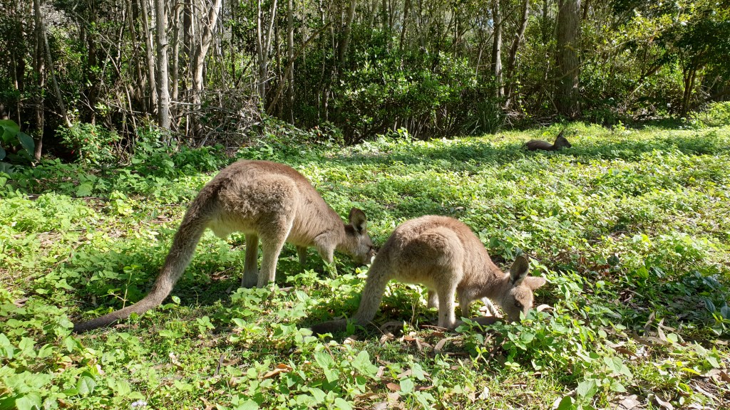 Je n’ai jamais vu autant de kangourous, petits et grands, au même endroit, et si peu farouches. Bon, si on s’approche un peu trop près, ils sortent les épaules et montrent les muscles de leurs membres supérieurs. Et si on s’approche encore plus près, ils bondissent élégamment 5 mètres plus loin. Nous avons aussi vu quelques koalas ; ah ces koalas, s’il y avait un animal totem des australiens, une mascotte, ça serait le koala. Gros dormeur et très tranquille, il a la « chill attitude » et illustre parfaitement la mentalité “no worries mate, take it easy”.