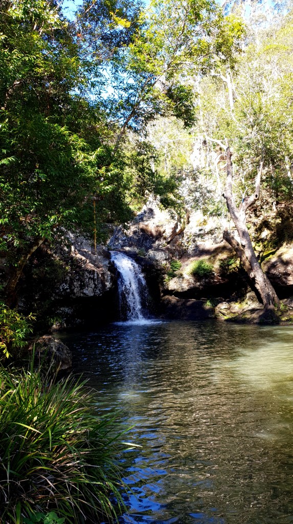 Nous sommes beaucoup trop heureux d’être arrivés là et c’est avec engouement que nous grimpons au point culminant et admirons la piscine naturelle d’eau claire en bas.