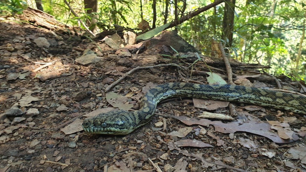 Malgré les avertissements des filles, je m’approche. Ce n’est pas très intelligent: il pourrait me sauter à la figure à tout moment. Mais je veux le regarder de près. Un groupe de randonneurs qui passe nous explique que cette espèce de serpent arboricole est typique du nord-est du Queensland australien, et n’est pas dangereuse. Cela n’empêche pas un petit garçon qui passe par là de pleurer de peur à la vue de l’animal. L’Australie est le seul pays qui compte davantage de serpents venimeux que non venimeux, et nous en croisons un marron quelques minutes plus tard, beaucoup plus fin cette fois. Bref, que d’émotions!