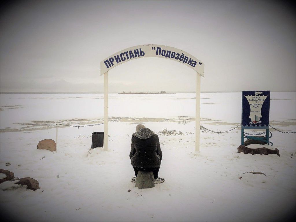 Alors que la voiture s’achemine doucement sur les routes enneigées, Simeon, assis devant mais retourné de trois quart, ne peut détourner son regard d’Aurélie, visiblement fasciné par son air exotique et ravi par notre joyeuse conversation. Ne parvenant pas à prononcer le prénom d’Aurélie, il décide de l’appeler « Olala ». En chemin, nous faisons un détour par le lac, où Siméon veut nous montrer un merveilleux point de vue. La voiture stoppe, il nous ouvre les portières, porte nos sacs et nous montre les différents éléments du paysage à prendre en considération.