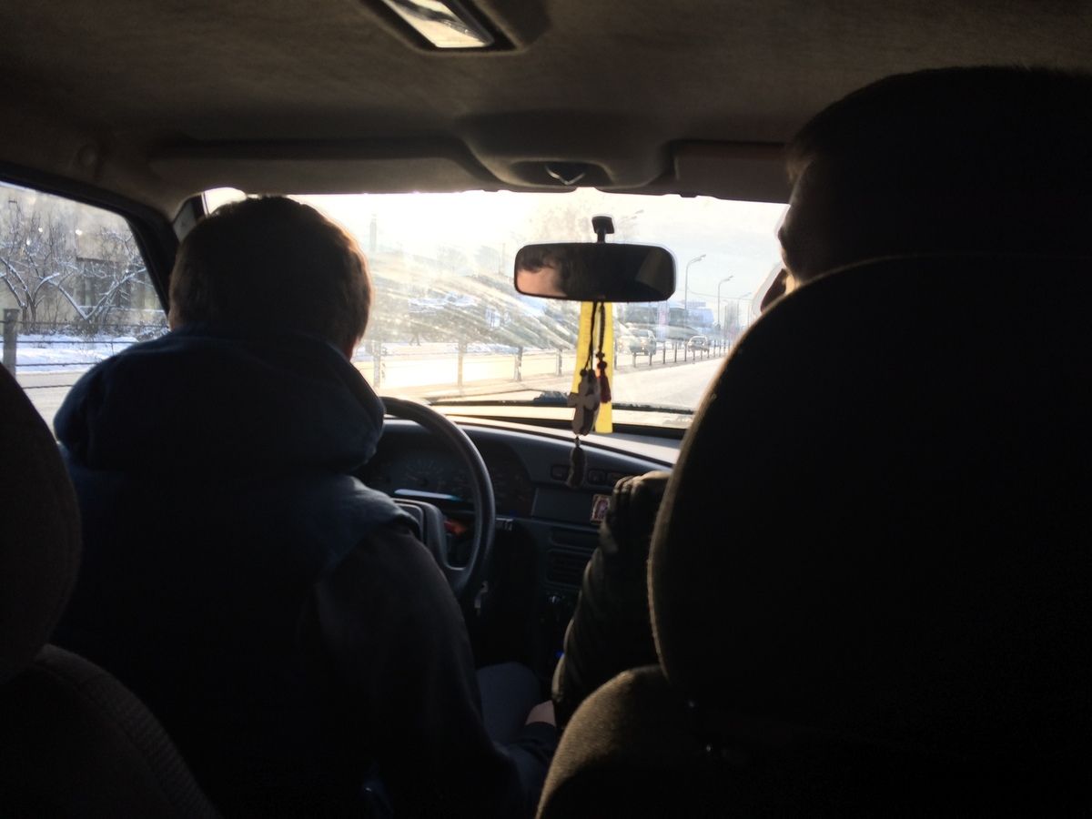 Derrière leur évident état d’ébriété se cache une curiosité de parler à deux Françaises perdues à Rostov et aussi une joie de pouvoir enfin pratiquer les quelques rudiments d’anglais qu’ils connaissent. Nous réussissons à leur dire au revoir, après maintes embrassades et selfies et la promesse de se revoir pendant le week end. Nous repartons gaîment vers l’auberge de jeunesse, dans le froid de la nuit rostovienne. Dix minutes plus tard, une voiture s’arrête à notre hauteur, les fenêtres se baissent et apparaissent la mine joyeuse de nos deux amis précédemment rencontrés. Ils nous invitent à monter dans le taxi et indiquent au chauffeur de taxi l’adresse de notre auberge de jeunesse.